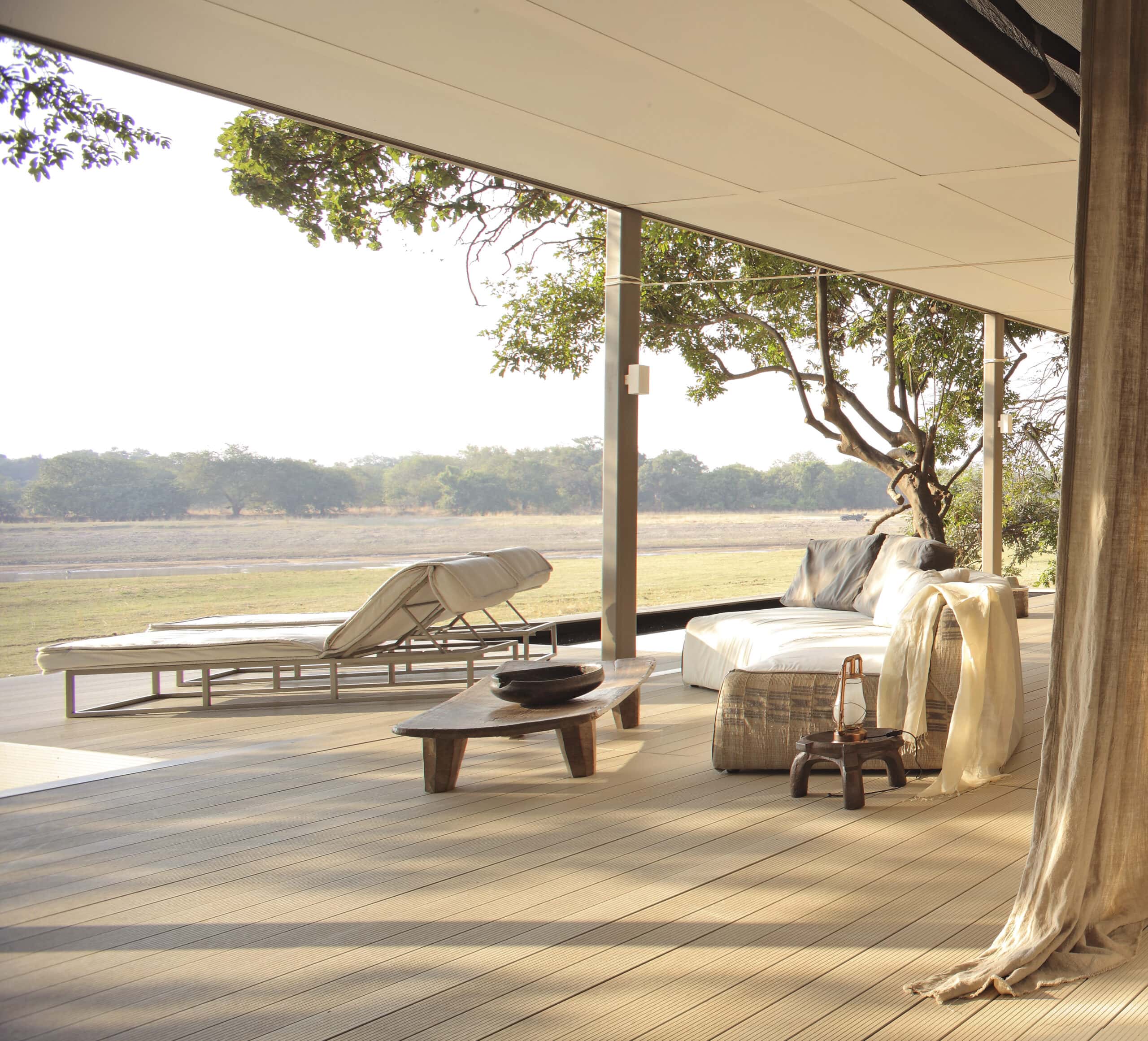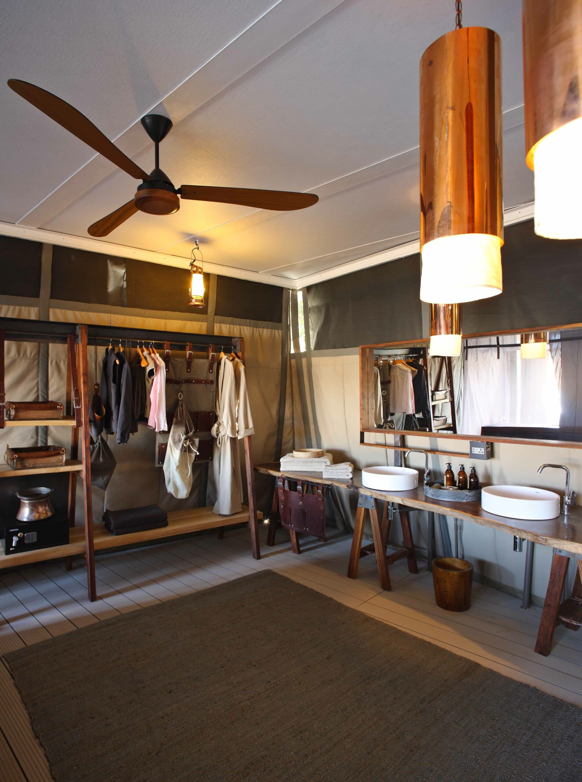 The design is original but simple and makes use of steel, natural materials, locally produced leather, reed work and canvas. The lack of concrete or brick and the recycled composite timber floors complement the wilderness perfectly, melting into exquisite surroundings.