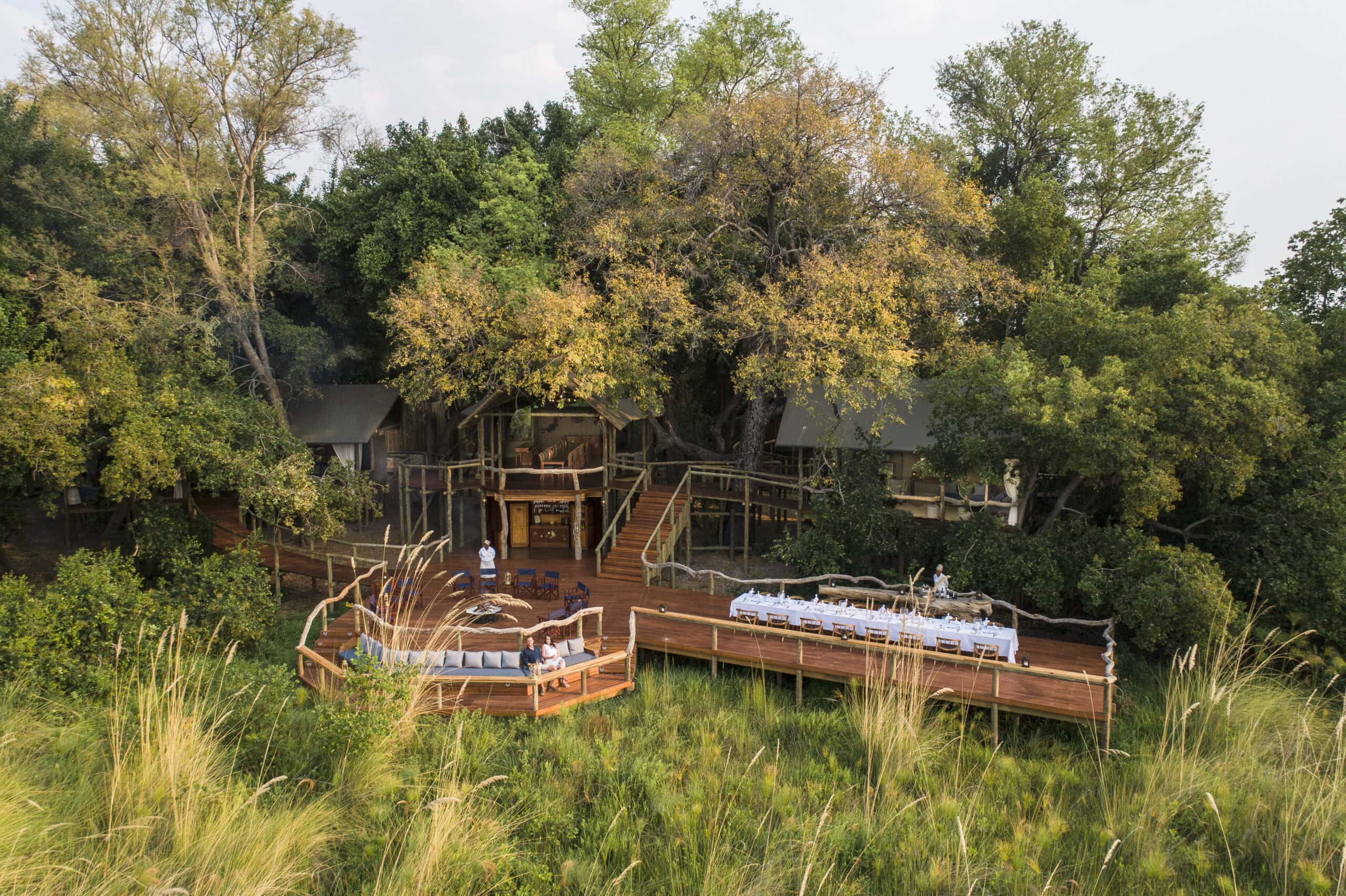 • A unique “tree-house” feel: central spaces under canvas & high wooden platforms