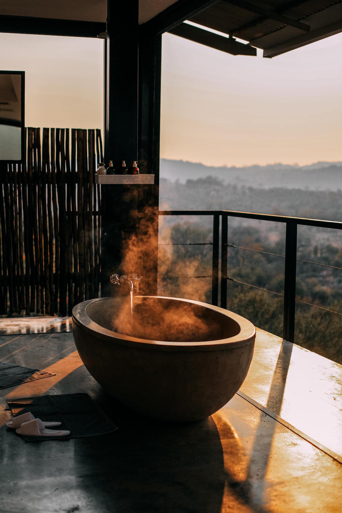 12 open-plan suites are perched on the hillside and feature terraces and daybeds where guests can immerse themselves in panoramic vistas and unsurpassed tranquillity. The clever construction offers complete privacy, exquisite luxury and a sense of openness and freedom. Soak in the pool in between game drives or expertly guided walking safaris, and perhaps enjoy a massage in the comfort of your suite. Central areas invite guests to socialise in style and savour delicious meals.