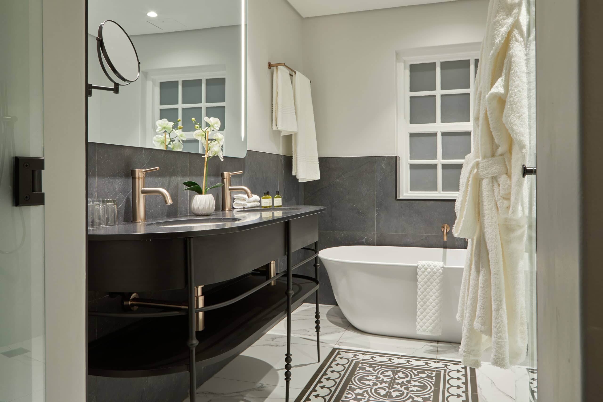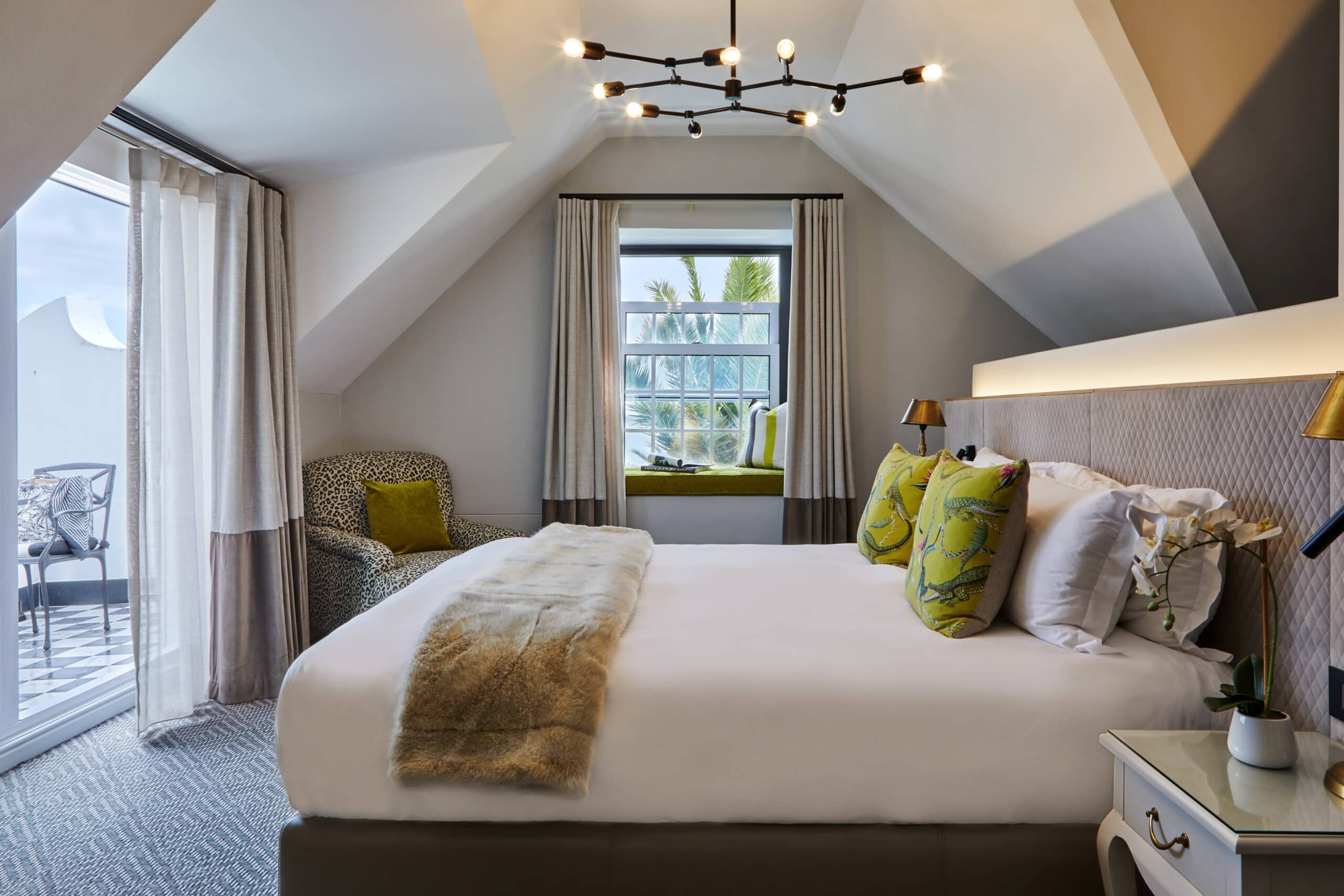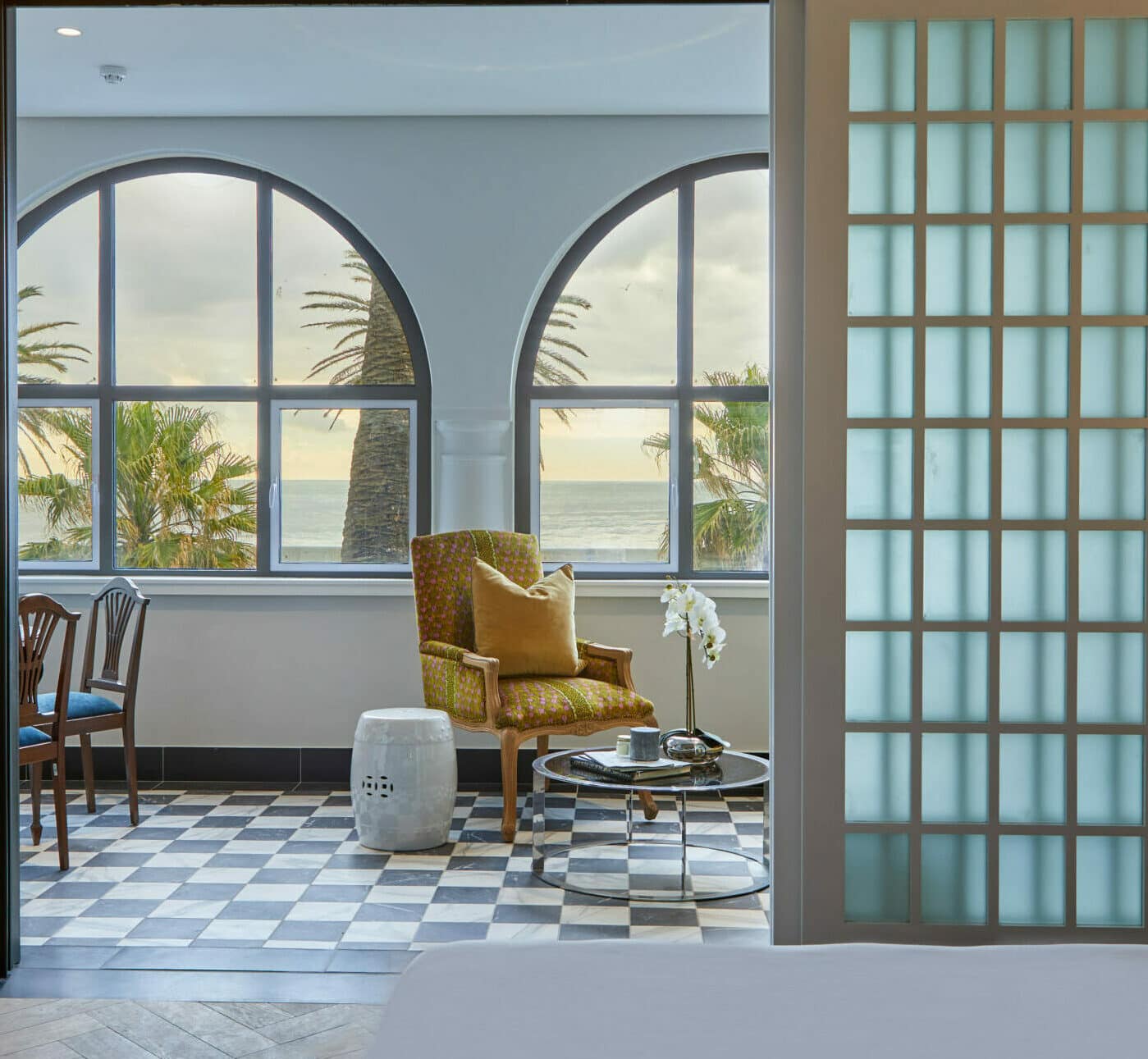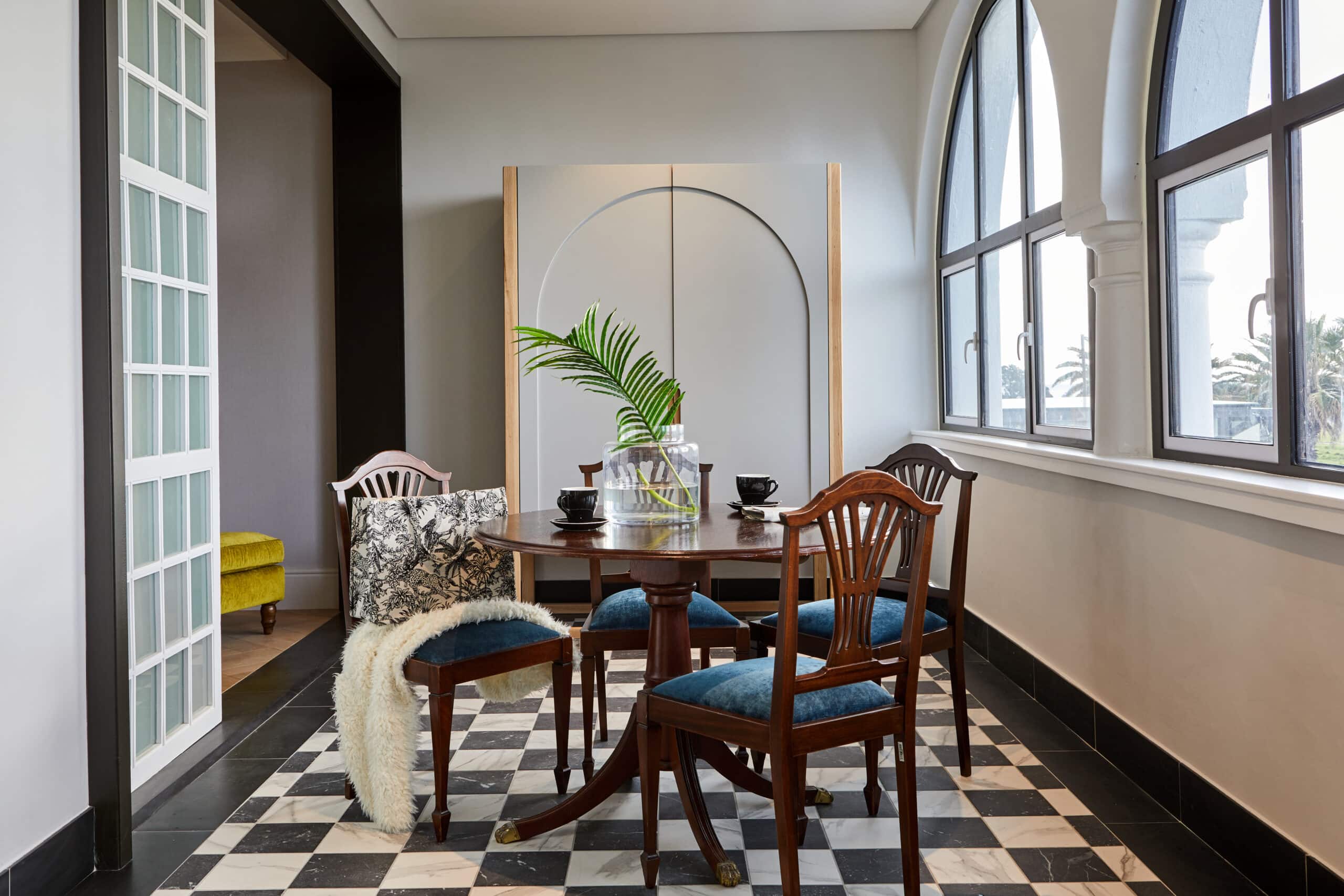 The original Grande dame of the Atlantic Seaboard, this three-storey gabled hotel has recently undergone a major revamp and she is looking rather splendid. Previously known as Winchester Mansions, this seafront facing gem was originally built in 1922 as a residential property and later, in 1958, converted into a hotel. Enjoying an enviable location on the ocean-hugging Sea Point pedestrian promenade, the Winchester of today, offers the best-value sea views! The gabled façade, bathed by the setting sun, faces the promenade, an ocean-hugging pedestrianised walkway that attracts locals from all walks of life. A 3rd generation family-owned hotel, the property is managed by The Newmark hotel group who has cleverly and sensitively managed the makeover, to elevate the look and feel of this icon into a much lighter, brighter and fresher space, while paying homage to the proud history of the building. Functional upgrades to the hotel’s entire plumbing system, remodelled black-and-white bathrooms and a new-look throughout the rooms and public areas, is pulled together by splashes of bold prints, quirky décor elements, antiques, local art, textured fabrics and a brand-new restaurant and bar.