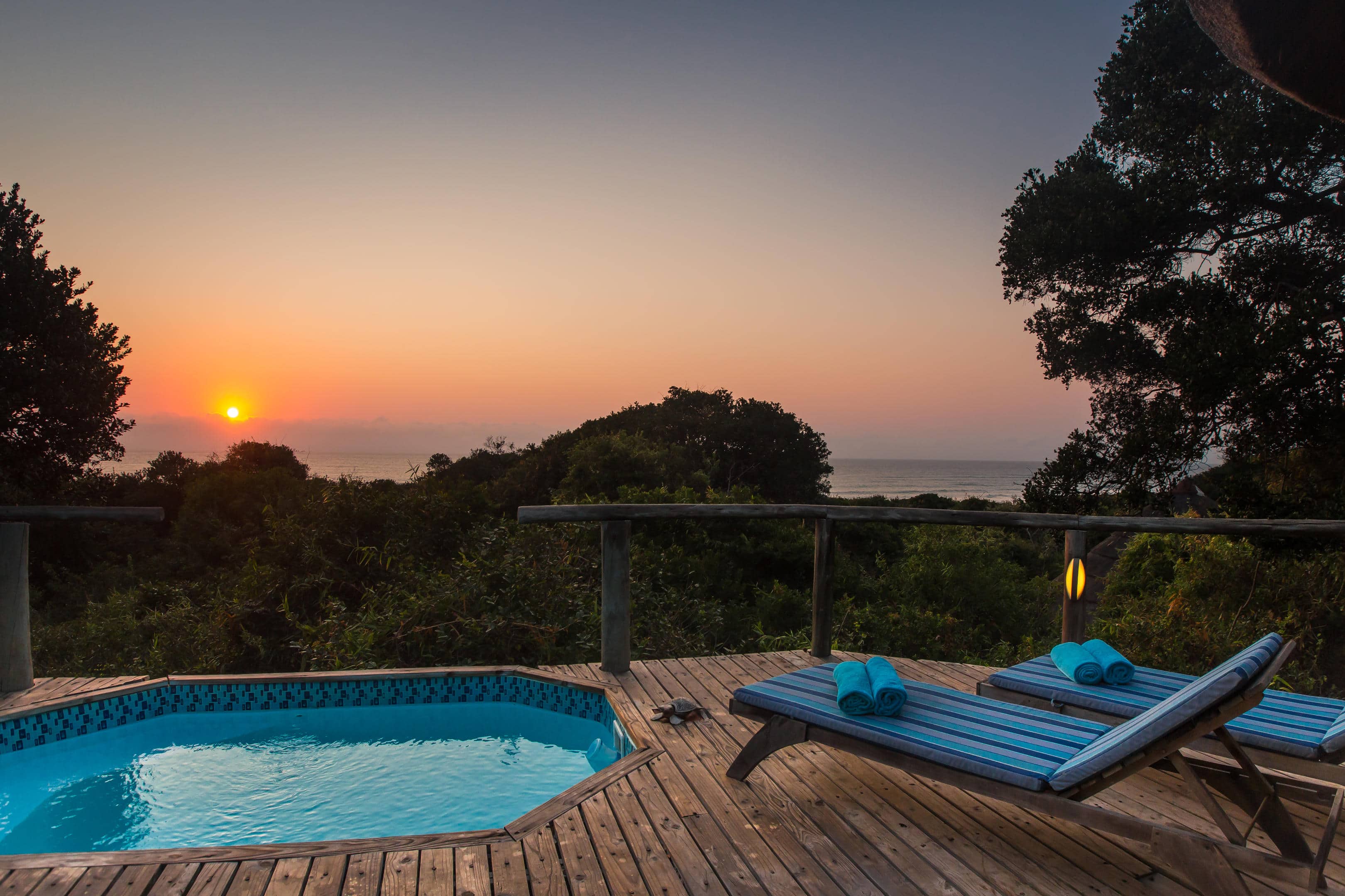 Thonga Beach Lodge is set above a secluded bay and nestled into the indigenous coastal dune forest of the Maputaland coast. The sense of being on a deserted island is a strong one, and gazing out from your “island shelter” you could be forgiven for thinking you should be out helping Friday flag down passing ships for rescue.