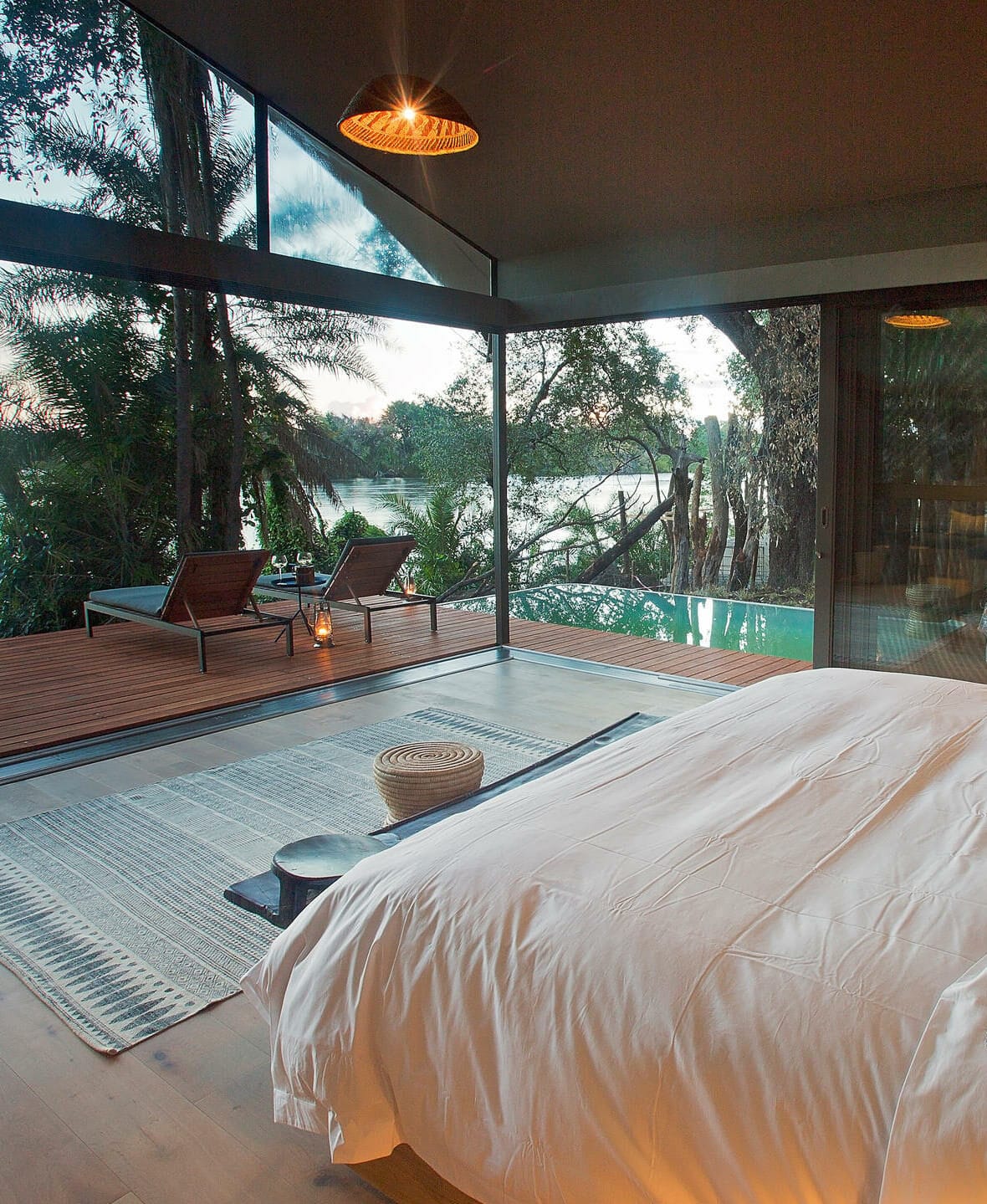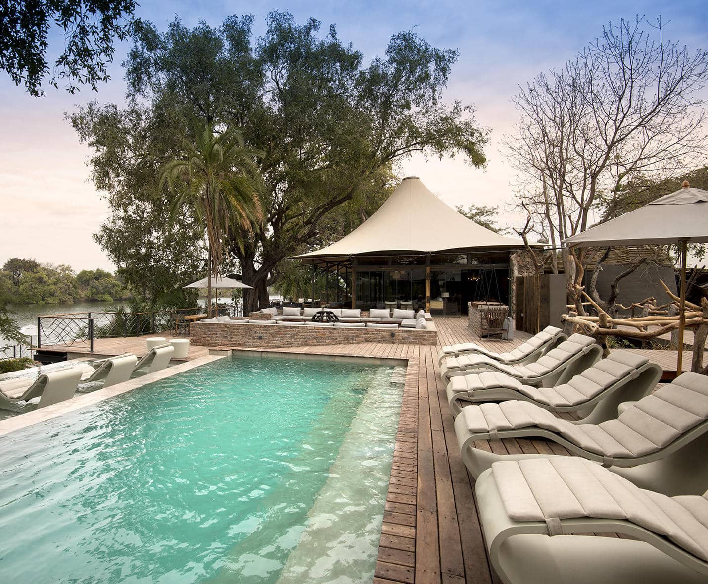 • A luxurious riverside lodge in the Mosi-Oa-Tunya National Park, on the banks of the Zambezi River