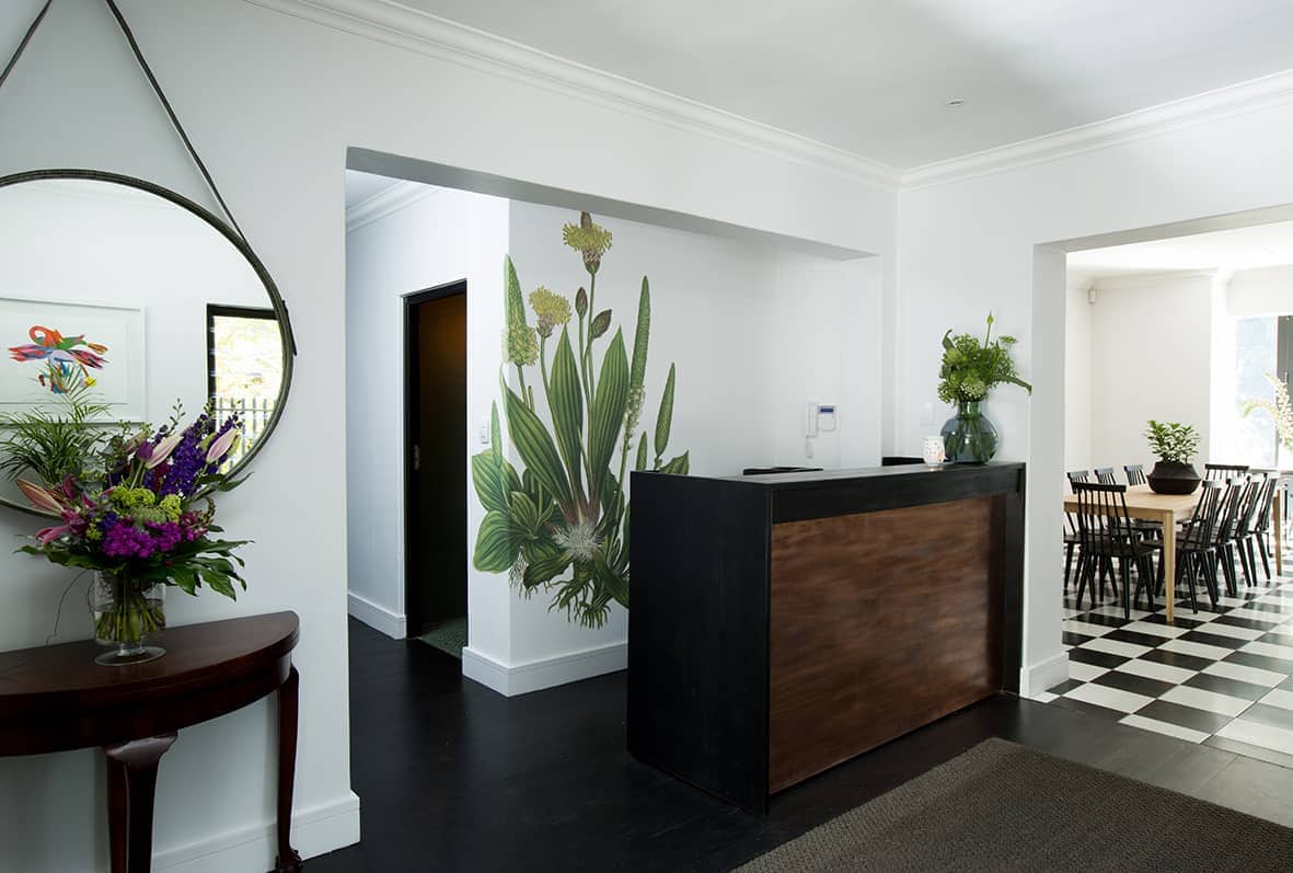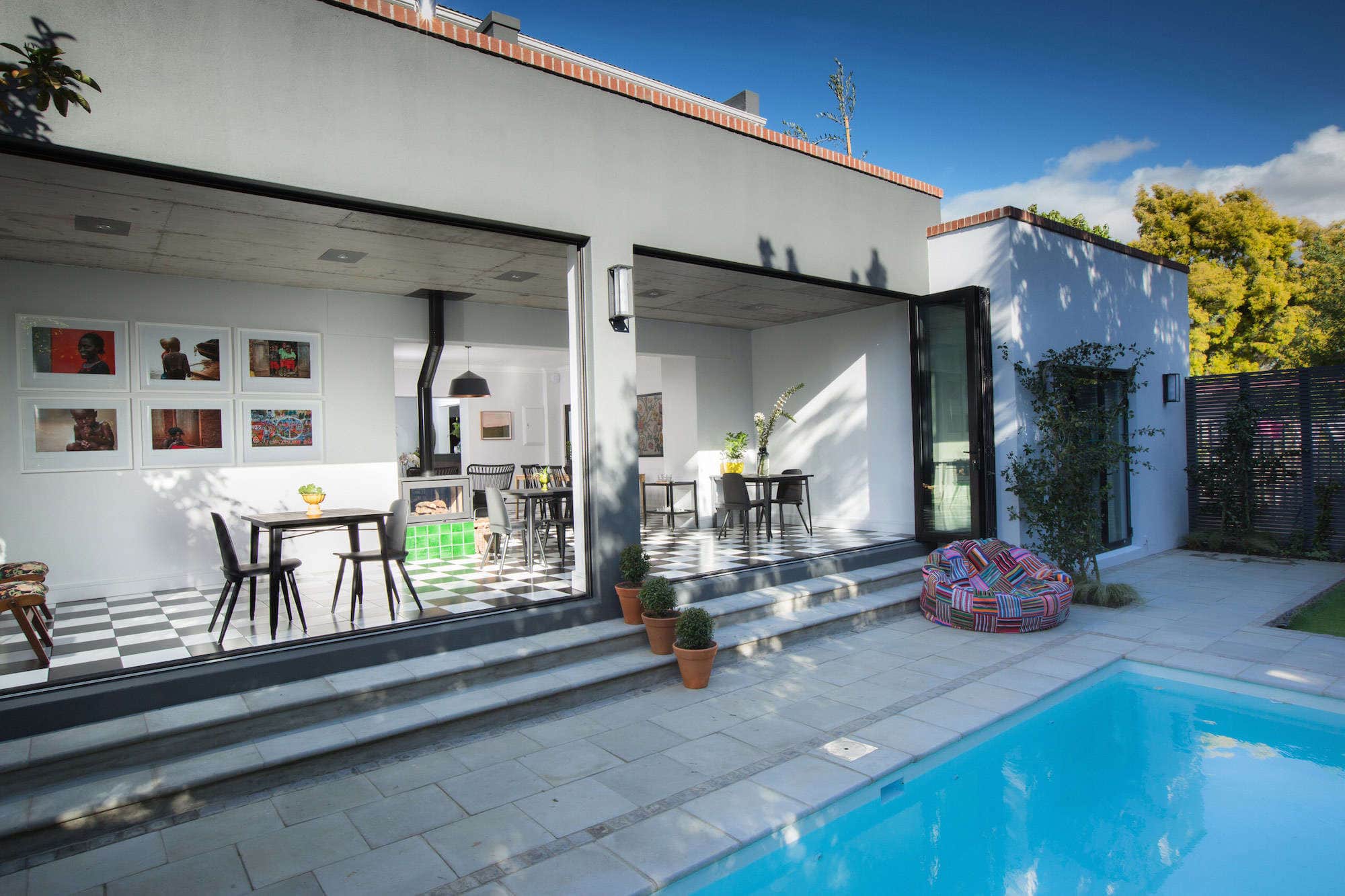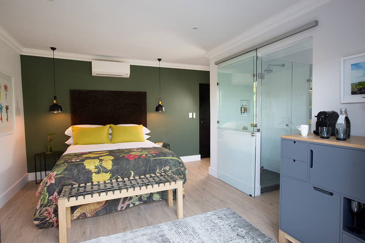 This beautiful modern guesthouse in the Winelands town of Stellenbosch, is ideally located for exploring the region. 7 individually appointed rooms have a fresh, contemporary style, en-suite bathrooms (except the garden room) and the modern conveniences to ensure comfort. The garden room, alongside the pool, is an open-plan bedroom with a free-standing bath and large shower. Twice Central’s attractive living spaces boast trendy décor where guests can unwind in style, or enjoy delicious home-made breakfasts in the dining area. The property is within walking distance of an array of Stellenbosch restaurants, for lunch and dinner. When not out exploring the fascinating town, with its wealth of galleries, cafes and boutiques, perhaps soak up the sun beside the pool or hop onto a Twice Central bike for a ride around town.