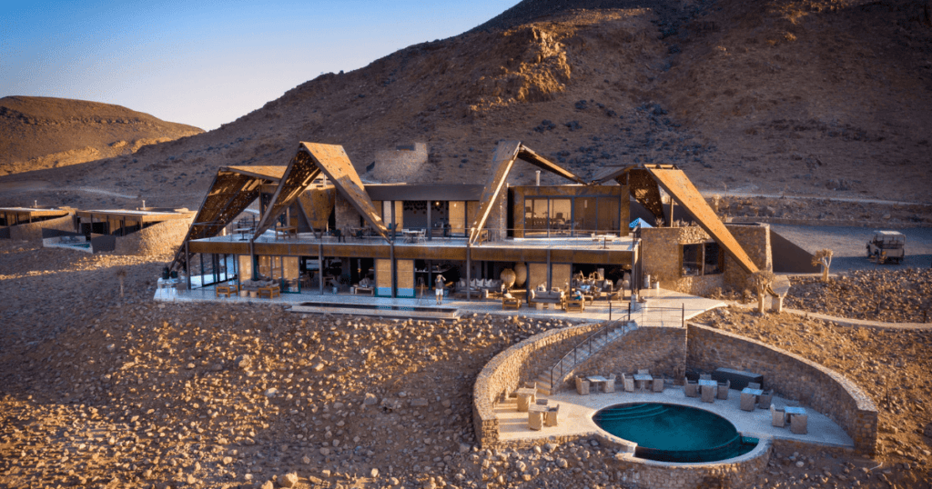 &Beyond Sossusvlei Desert Lodge is a spectacular design of glass, rock and steel set within one of the world’s few Dark Sky Reserves. Evenings are spent in the company of a resident astronomer at the on-site, world-class observatory. The ten suites strike a wonderful balance between sophistication and simplicity, reflecting chic desert-inspired minimalism. A variety of desert adventures are on offer such as guided quad bike excursions and hot air ballooning.