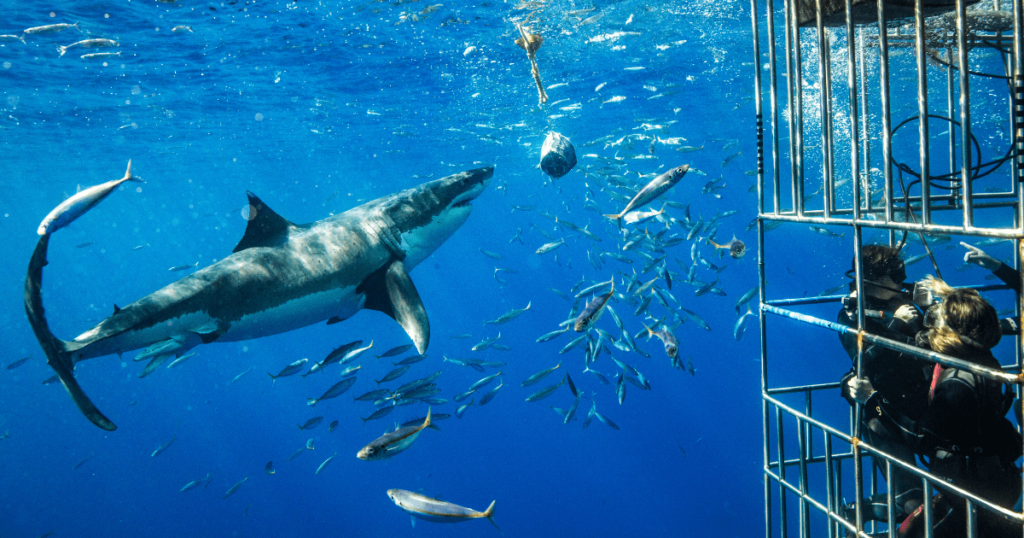 Shark Cage Diving in Gansbaai: Get up close with great white sharks in their natural habitat.