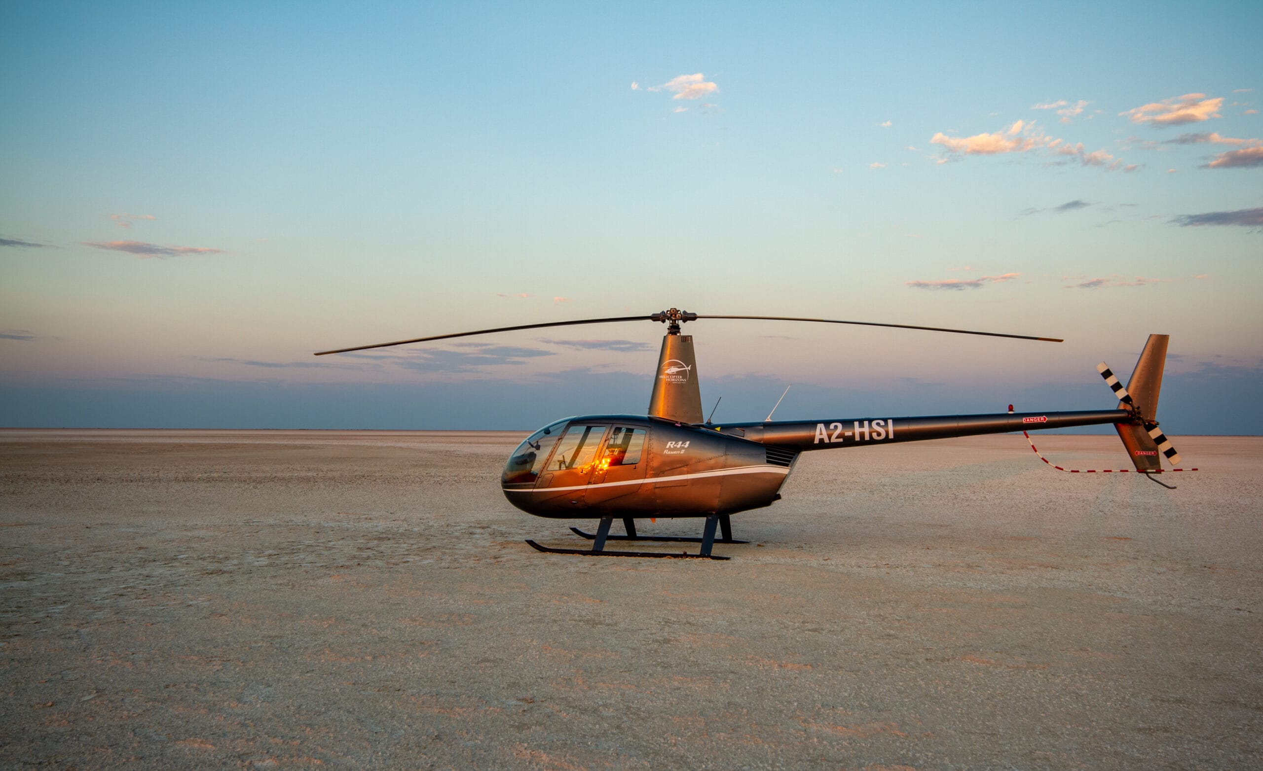 - For the ultimate arrival, journey to the pans by helicopter on a 30-minute flight. With no doors, this incredible flight provides uninterrupted views of Botswana’s unique landscape and wondrous wildlife